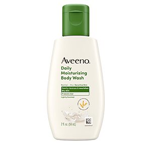 The 2-Ounce Aveeno Daily Moisturizing Body Wash for Dry & Sensitive Skin is currently on sale at Amazon.