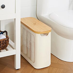 $11.99 – Rosos 9-12 Roll Toilet Paper Storage w/ Bamboo Lid (Beige) + Free Shipping w/ Prime or on $35+