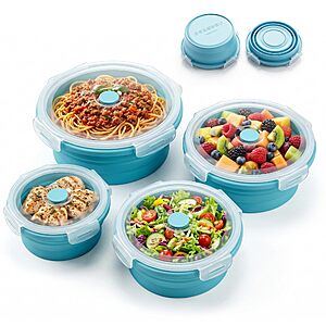 The 4-Pack Yubng Silicone Space Saving Collapsible Meal Prep Containers w/ Lids (Sky Blue) are currently available for $13.99 at Amazon after clipping the product page coupon and applying Code 2OF5BIDW at checkout.