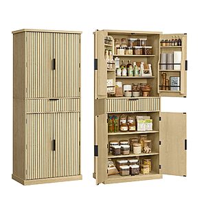 Thumb Score: +6 VASAGLE MAXE Collection – Pantry Cabinet [ amazon.com ] , 70.6-Inch Tall Storage Cabinet with Drawer, 6 Adjustable Shelves, 2 Cabinets, Fluted Doors, Mid Century Modern, for Kitchen Living Room, Oak Beige UBBK365Y01 $153.45