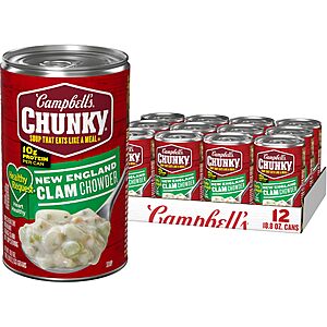 Introducing the 12-Pack of 18.8-Oz Campbell’s Chunky Soup featuring New England Clam Chowder – a nutritious and delicious choice for your pantry! This healthy option is rich in flavor and loaded with chunky ingredients, making it a perfect comfort food for any meal. With this deal on Amazon amazon.com , you can get the 12-pack for $17.80, but by checking out via Subscribe & Save, you save 5%, bringing the price down to just $16.91. Shipping is free with Prime or on orders over $35.