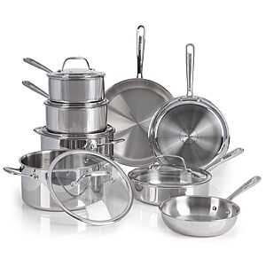 $169.99 – T-fal Pro Tri-Ply Stainless Steel Cookware Set 13 Piece Induction Compatible, Oven Safe 500F, Lids 350F, Fast & Even Heat, Pots and Pans Set, Silver