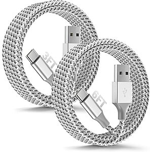 Home Deals $2.99 – 2-Pack SwaggWood USB-A to USB-C Charging Cable (3′ & 6′)...