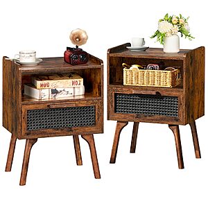 2-Pack 22.87" Lerliuo Boho Rattan Wooden Legs Nightstands w/ Drawer & Open Shelf + Free Shipping w/