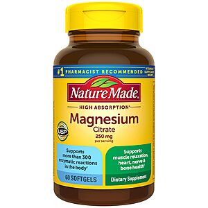 Home Deals $4.35 – 60-Count Nature Made Magnesium Citrate 250mg Softgels w/ S&S...