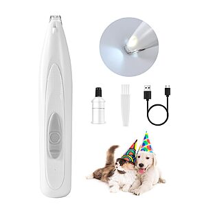 Thumb Score: +6 FURBONA-US via Amazon [ amazon.com ] has FURBONA Dog & Pet Rechargeable Paw Trimmer w/ LED Light on sale for $9.99 – 50% off when you enter coupon code VR8M5S6E at checkout = $4.99 . Shipping is free w/ Prime or on $35+. Product Description from Amazon: [list][*]Accurate Blades: 0.35 in (9 mm) narrowest R-shaped safety blades fit into your dog’s paw pads comfortably without causing any harm. Expertly designed for precise trimming on the face, ears, butt, feet, toes, and more, built for long-lasting performance and durability