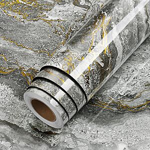 $6.99 – 12″ x 317″ LACHEERY Gold Grey Marble Waterproof Self Adhesive Contact Paper + Free Shipping w/ Prime or on $35+