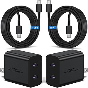 The 2-Pack 45W Kitminun USB C Dual Port Charger w/ 10ft Cable Cord (Black) provides fast and efficient charging for your devices. This charger features two USB-C ports, allowing you to charge multiple devices at once. The long 10ft cable gives you the flexibility to charge your devices from a distance.