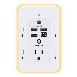 The HANYCONY 10-in-1 Outlet Extender with Night Light and 4 USB Ports is a versatile and convenient tool for charging and powering multiple devices at once. It offers 10 outlets, including four USB ports, making it ideal for homes, offices, or travel. This extender also features a built-in night light, providing a soft glow in the dark.