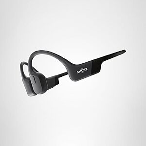 The SHOKZ OpenRun are bone conduction open-ear headphones perfect for sports enthusiasts who want to stay aware of their surroundings while listening to music. This bundle includes a waterproof carrying case, sweat headband, and comes in black (standard size with magnetic charging).