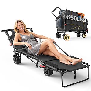 Home Deals $89.99 – 2-in-1 LEVELEVE Heavy Duty Collapsible Cart & Beach Chair (Select...