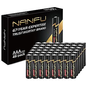 The 48-Count NANFU 1.5V AAA Alkaline Batteries offer long-lasting power for your devices, making them an essential household item. These high-quality batteries are ideal for everyday use in a variety of devices such as toys, remotes, and flashlights.