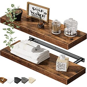 The QEEIG 2-Pack 15.7″ Bathroom Floating Shelves in Rustic Brown are available on Amazon for $9.98, which is a Thumb Score of +6.
