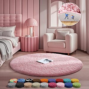 This 3.6-ft Ophanie Round Plush Rug in Pink color is currently discounted to $9.99 on Amazon for Prime Members and includes free shipping.
