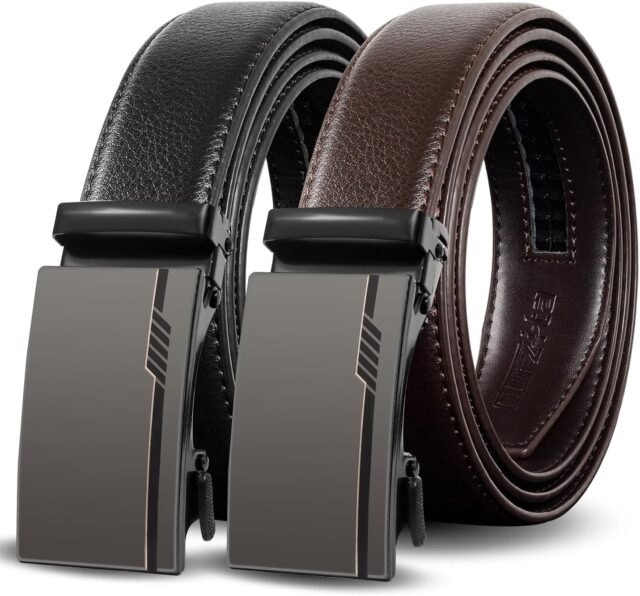 Truyis Mens Ratchet Adjustable Leather Slide Belts – 2-Pack – $17.99