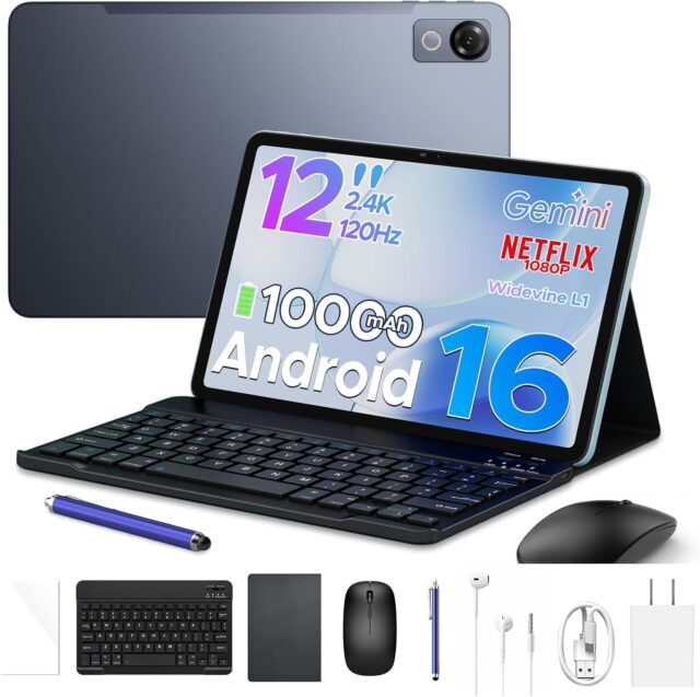 Dive into a world of entertainment and productivity with the Pockam P12, a 16″ 120Hz 2.4K Android 16 tablet boasting an impressive 128GB storage and 8GB RAM.