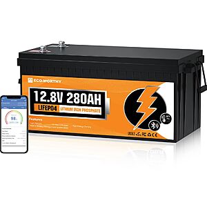 This Eco-Worthy LiFePO4 RV Battery offers a massive 280Ah capacity at an affordable price of just $236.13 after applying the coupon code CD25US. Here are its top features: