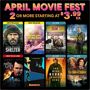 The Fanflix April Movie Fest offers a collection of movies with discounts ranging from $3.99 HD to $9.99 UHD. Some of the titles include: