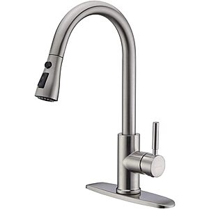 The WEWE Single Handle High Arc Kitchen Faucet with pull down sprayer is on sale for $35 at Amazon, and includes free shipping with the coupon code BJEZ5VQG applied at checkout.