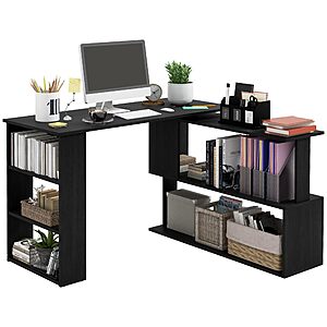 $66.99 – HOMCOM L Shaped 360 Degree Rotating Corner Computer Desk w/ Storage Shelves, (Black) + Free Shipping