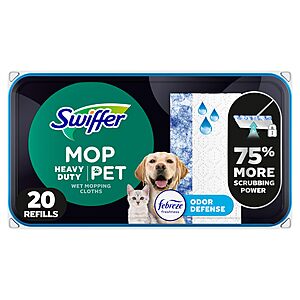 The 20-Count Swiffer Sweeper Multi-Surface Wet Cloth Refills (Pet Heavy Duty, Fresh Scent) are available for $7.26 at Amazon when you subscribe and save. Shipping is free with Prime or on orders over $35.